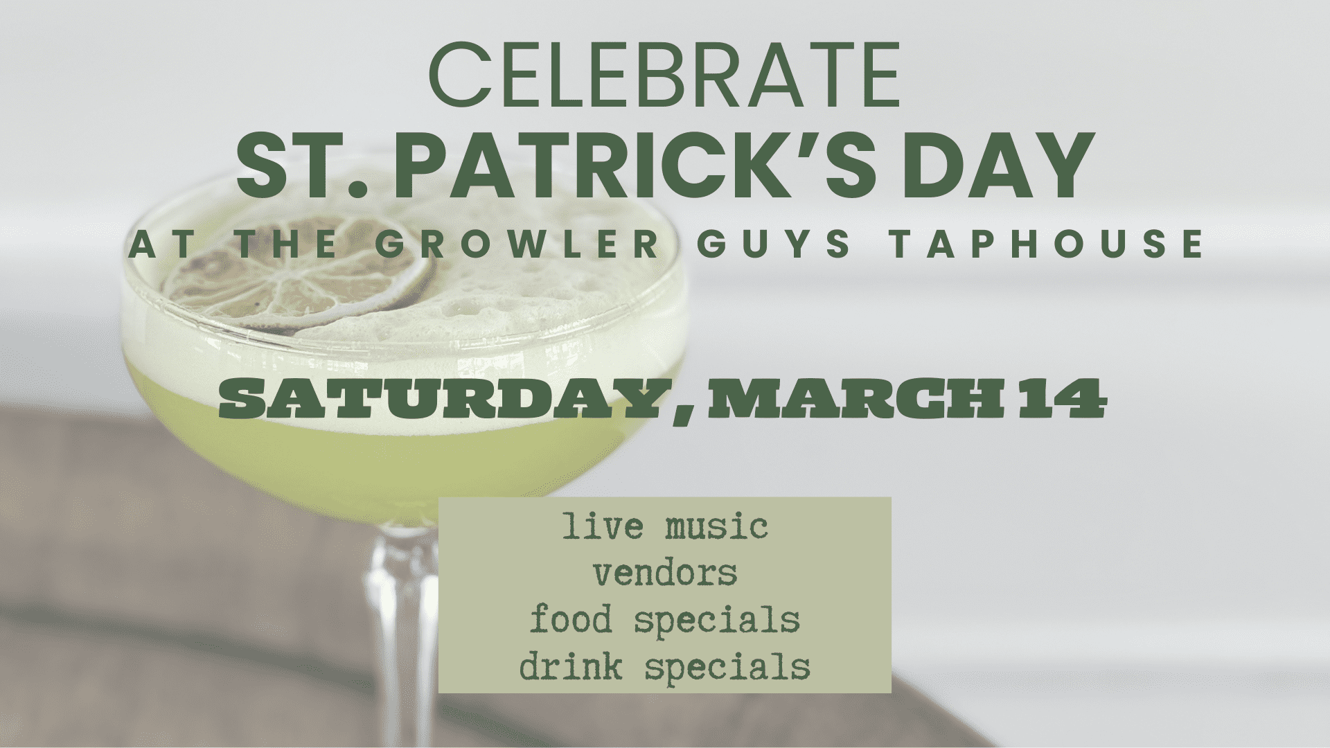 Celebrate St. Patrick’s Day at The Growler Guys Taphouse on Saturday, March 14 with an evening full of music, community, and festive pours. The celebration kicks off with live music from Jefferson Pipe Band at 5:30 PM, followed by another set of live music from Hopfinger Wishes at 6:00 PM. Throughout the evening, enjoy special St. Patrick’s Day food and drink offerings while browsing local vendor pop-ups around the taphouse. It’s the perfect chance to sip, shop, and celebrate with great music, great company, and a little extra Irish spirit. 🍀